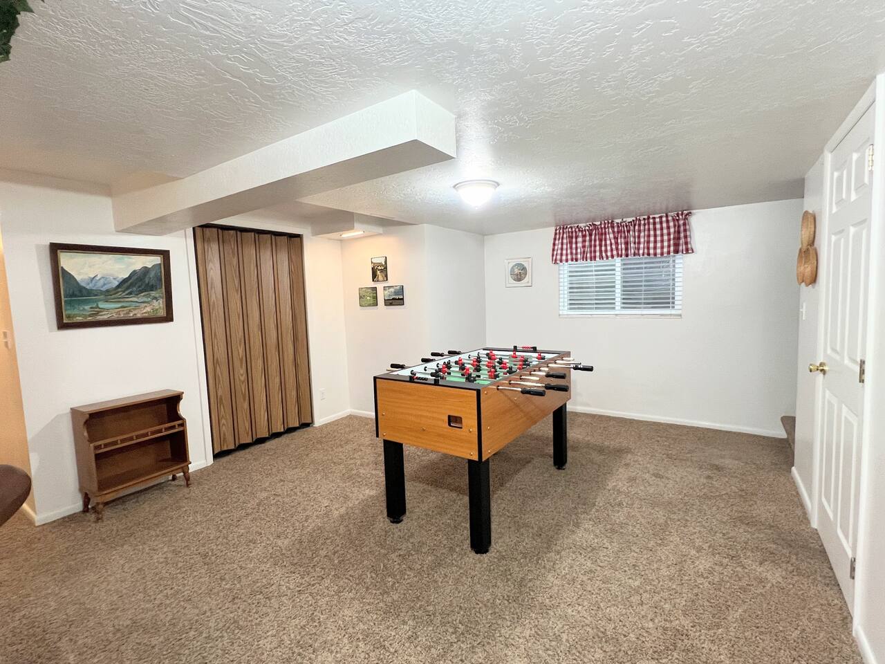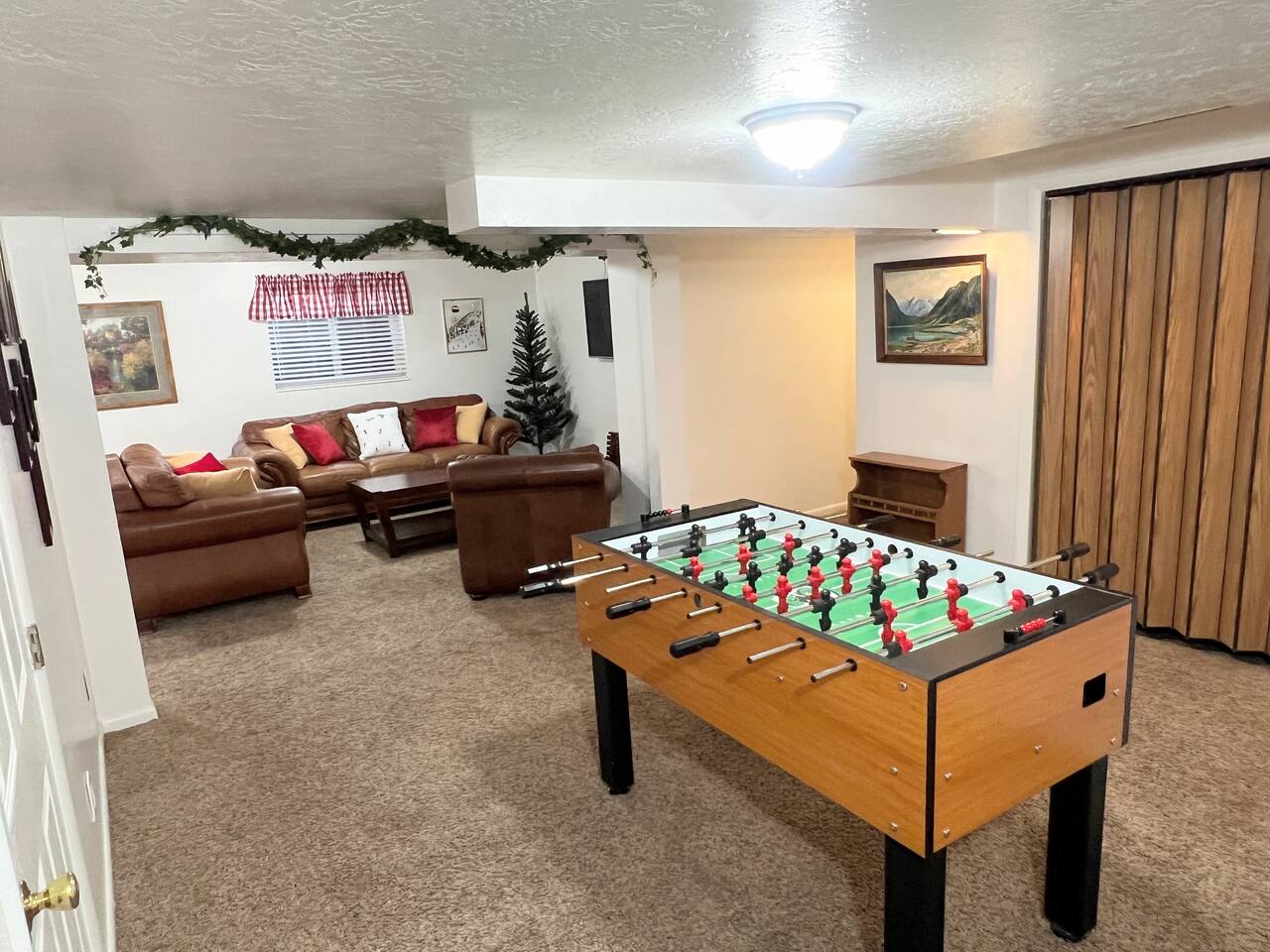 This large basement apartment offers everything you need for a relaxing stay: 🛏 Bedrooms: Three bedrooms with comfortable beds and large closets for ample storage. 🚿 Bathrooms: Two full bathrooms fully stocked for convenience and privacy. 🍳 Kitchen: Fully equipped kitchen with cookware, dishes, utensils, coffee needs, and appliances. 🧺 Laundry: A personal washer & dryer are provided with laundry detergent available for guests to meet their needs. 🎬 Living & Entertainment: Spacious family room with wall TV (ready for login to your personal apps!), free local channels, a dedicated work space, foosball table and games- perfect for downtime or fun nights. 🌲 Location: It’s 11-12 minutes to the mouth of the Cottonwood Canyons- with mountain trails and ski resorts, accessible by public transit or car. Close to a variety of dining, shopping, grocery, hospital, Mountain America Expo center, theaters, and local attractions. Only 25 minutes to the SLC Airport, and 21-25 min to Downtown SLC. Come enjoy today! 🎥 Security- exterior cameras video & audio in front, on side, and over the back stairs.
